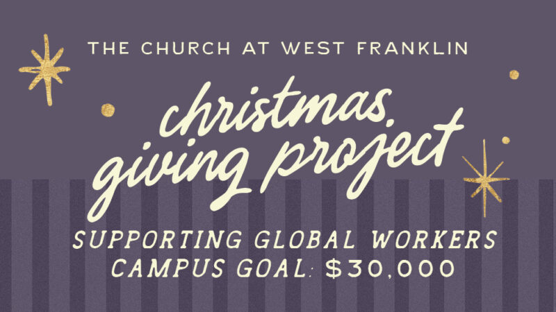 Join us on Wednesday, December 10, from 6:00–7:30 p.m. at The Church at West Franklin for our Christmas Food Project. Together, we’ll enjoy pizza and Christmas treats as we pack food boxes for Franklin Begin Anew and Franktown Open Hearts. Come ready to serve as we bless our ministry partners and share the love of Christ this Christmas season.